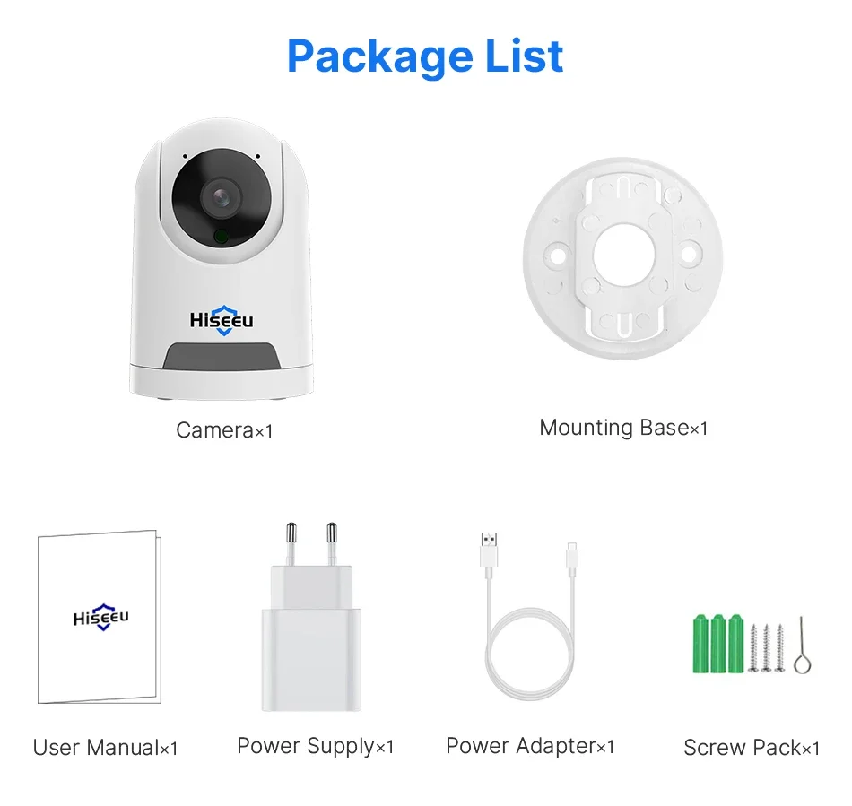 1. Unbox the camera, remove all packaging, and check parts before first use.